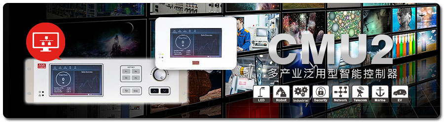 明纬新推出的CMU2为系统电源的控制器,而系统电源之组成,是由数台电源组合而称之。明纬产品组合而成的系统电源可应用在大耗电量的应用环境,例如: 工业应用、水处理、EV充电、电子产品老化操作系统、UV 固化设备、园艺照明、雷射...等。当客户有此类大功率需求时,通常会将电源集中配置以利管理。此时,就是CMU2出场的最佳时刻。为了实现控制数字化与智能化,明纬推出第三代多产业泛用型智能控制器CMU2内建丰富的软件与韧体,可搭配电源产品DRP-3200系列,实现电源管理进而应用于工业应用、水处理…等(Link),或搭配能源回馈式烧机产品ERG-5000/ERS-1400来实现低能耗老化作业(Link)。
