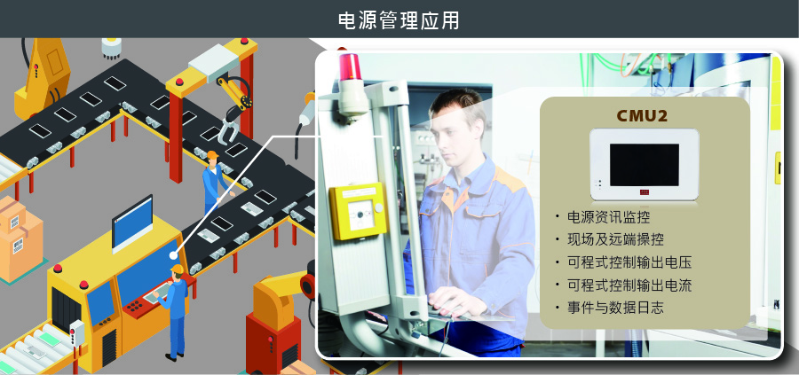 此外,为了方便使用者安装于各场合,CMU2有两种型态可选购,分别为独立型与机柜型。针对不同应用有内建不同韧体与软件,例如用于电源管理时所需的电压电流调整,功率监控、日志,或是使用在烧机设备时所需的烧机时间,负载设定…等,让使用者可快速地透过明纬最新设计的人机接口,进行系统的监视与控制。而为协助终端用户达成智能工厂与工业自动化,CMU2除了配有触控面板之外,更个别支持PMBus、CANBus或Modbus TCP通讯协议,让管理者可透过有线或无线连网方式,达成近、远程操作。