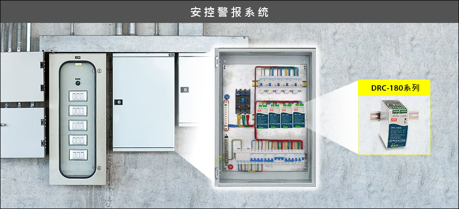 明纬导轨式安控电源DRC-40/60/100系列上市多年广泛被使用于安控、消防、资通讯、自动控制等领域,为满足更高瓦数之需求,新推出了180W的DRC-180系列。本产品适合安装于配电机箱内部之TS-35/7.5或TS-35/15导轨,不仅90~264VAC电压输入适用全球各地,并规划有13.8VDC及27.6VDC两种机型可选用,设计上将DC输出侧分为主输出(CH1)可提供给负载设备使用,及附属输出(CH2)可同时对电池充电。此外亦具备AC OK、电池低电压警示,搭配外加电池可构成DC-UPS备援功能,特别适用于考虑AC断电时仍需可正常运行之系统,如安控系统、消防设施、紧急照明系统、警报系统、数据库中心不断电系统、中央监视系统及门禁系统…等。