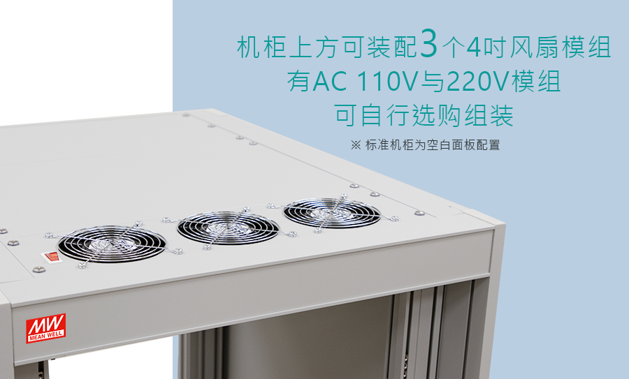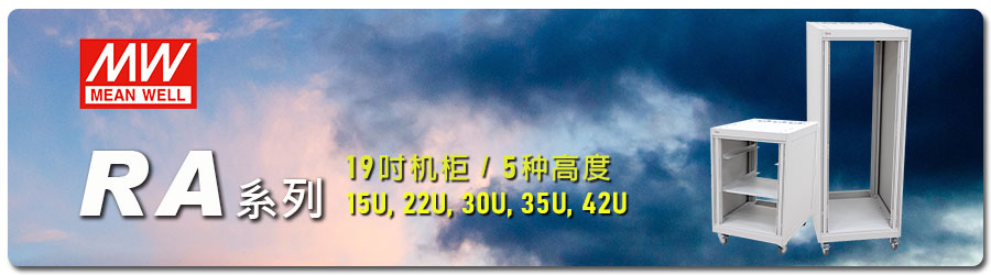 RA 系列为产业 19 吋标准机柜,有 15U~42U 一共 5 种高度供选择,已经大量与明纬电源供应器 3+N 全产品线搭配使用;另有支架、支撑板、通风板、空白面板与散热风扇组等配件满足客户安装需求,产品适用于系统电源、服务器、影音控制、监控系统及储存装置。