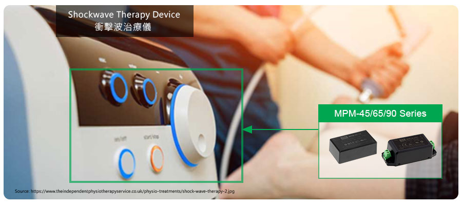 产品主要特点有: 尺寸小、不需外加任何EMI零件即可符合EN55011 Class B、超低待机损耗<0.1W及93%高效节能、通过了IEC/EN60601-1和ANSI/AAMI ES60601-1第3版医疗法规认证,并具备2xMOPP绝缘等级和超低泄漏电流(<100μA),非常适用于病患接触式BF型的医疗设备,如: 医疗检测仪器、可携式医疗装置、或需求极低待机低耗能的医疗设备……..等。