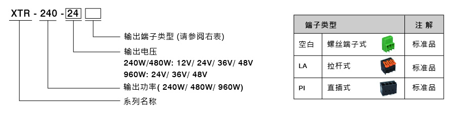XTR-240/ 480/ 960系列:240W/ 480W/ 960W全新世代3?输入超薄高效耐用导轨电源