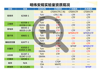 本公司服务产品范围广泛,涵盖以下类别:信息类、音响视听类、医疗产品、各式灯具(传统与 LED)、LED驱动器(LED Driver)、插头、插座与开关各式零组件、绿能储能设备与节能相关测试。我们不仅深耕各国技术标准,亦掌握国际法规趋势,替客户提供前瞻性的合规建议。同时,熟悉各国验证标志申请流程,与当地实验室紧密合作,可协助客户快速取得多国验证标志与证书,加速产品上市,拓展全球市场。