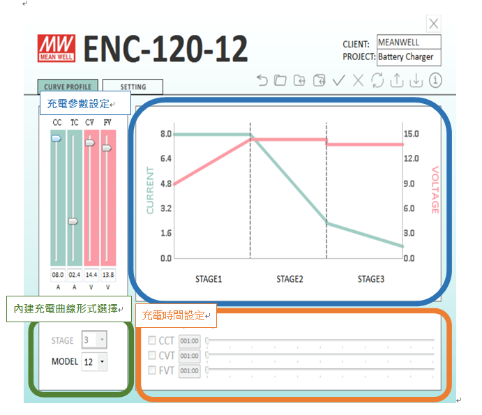 有鉴于此,明纬新一代的充电产品ENC系列,设计时即考虑用户或系统业者于建置充电设备时,所需求并着重的几项主要功能特别纳入设计规划,故在产品开发时,即要求针对产品的散热方式、可程序化应用与节能减耗等项目进行技术上的提升与突破,以期达到满足使用者最大需求的高附加价值。其中,可程序化控制输出电压与输出电流,可自行对各类电池的充电曲线进行设定与调整,大大的满足使用者需求(需搭配SBP-001与软件),可弹性设定电流充电,除此之外,尚有电池OVP保护、UVP保护、短路保护、过温度保护,将功能集合于一身,提供客户最佳的充电解决方案。搭配锂铁电池的充电效能,更可完全符合并通过美国能源部(DOE) 对电池充电器BCS(battery charger system) 能耗标准(UEC)的要求。