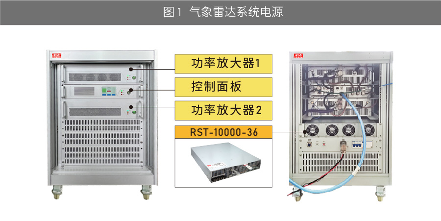 如下图 1 为气象雷达系统电源应用,负载为射频功率放大器。使用明纬 RST-10000-36 + 15U 机柜,组合成一套完整气象雷达系统电源,采用模拟警报讯号,以监控电源工作状态。